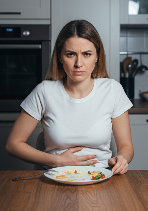 Mai ales după alimente grase, prăjeli sau porții mari.