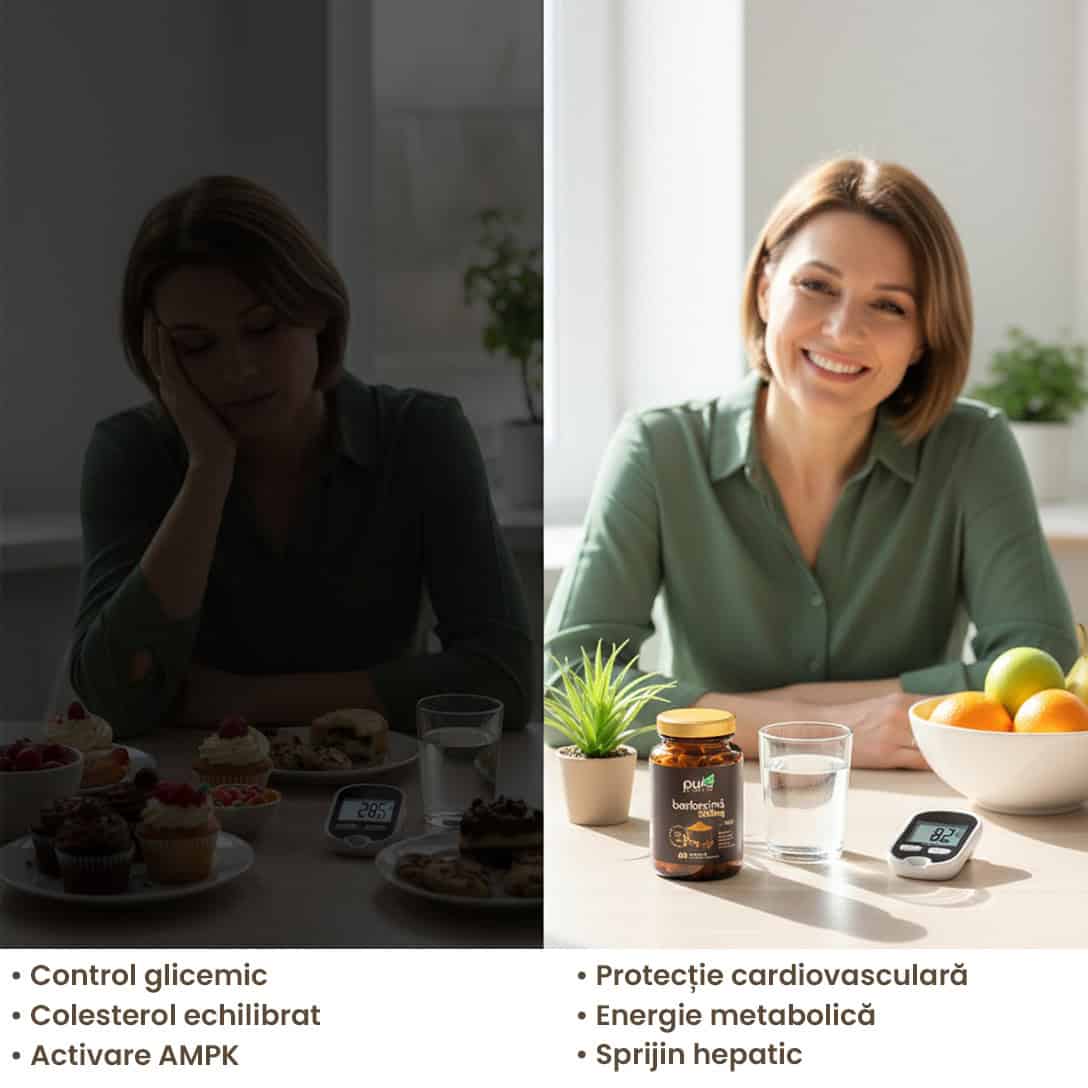 • Glicemie ↓ ≈15–20% (8–12 săpt.).
